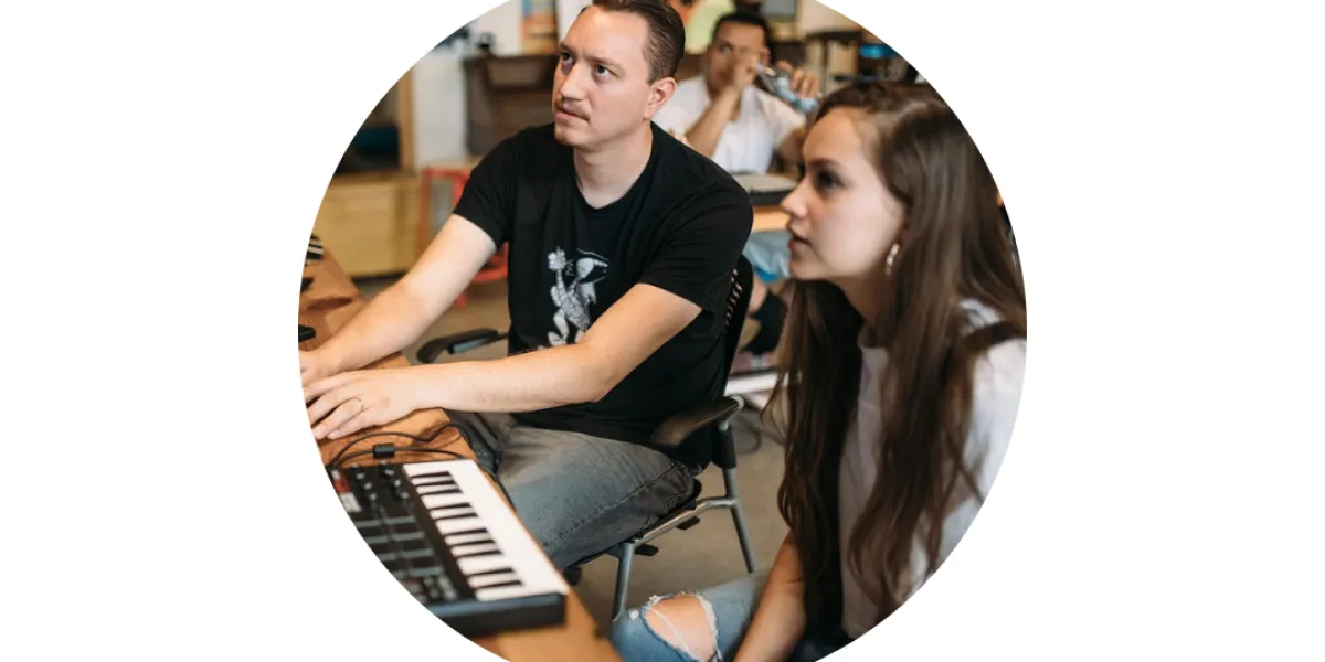 Everyday we will have free recording studio sessions, music production lessons, and jam sessions: Play musical instruments with a group / one on one session & explore music theory.